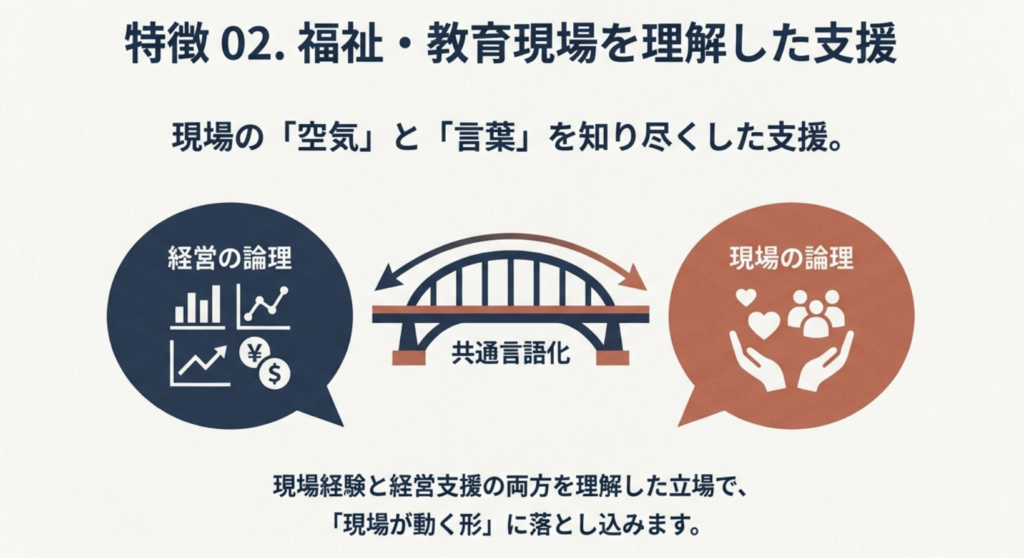小規模法人や人手不足の施設でも無理なく始められるよう、費用やペースは柔軟に調整。